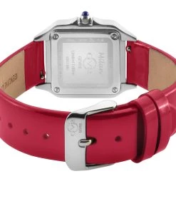 GV2 12110-4 Women’s Milan Diamond Swiss Quartz Watch GV2 Women’s Swiss Watch from the Milan Collection 27.5 mm Square 316L Stainless Steel Case/Push Pull Crown with Blue Cabochon Stone Diamond Cut Bezel, Crisp White Dial with 12 Diamonds Bright Red Leather Strap with Tang Buckle Anti-reflective Sapphire Crystal Water Resistant to 50 Meters/5ATM Swiss Quartz Movement Ronda 762