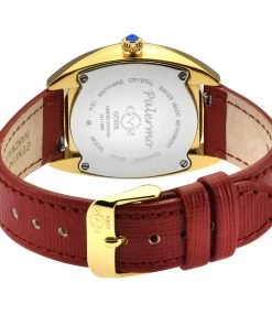 GV2 13102 Palermo Swiss Quartz Diamond Gemstone Watch GV2 Women’s Swiss Quartz Watch from the Palermo Collection 36mm Round 316L Stainless Steel IPRG Case, Diamond Cut Bezel White MOP Dial, 8 Diamonds, 8 Gemstones Push Pull Fluted crown with Blue cabochon Stone Genuine Handmade Italian Red Strap with Tang Buckle Anti-reflective Sapphire Crystal 5 ATM (50 Meters 165 Feet) Swiss Quartz Movement Ronda 763