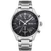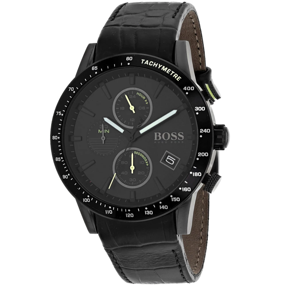Stainless steel case, Leather strap, Black dial, Quartz movement, Scratch resistant mineral, Water resistant up to 5 ATM – 50 meters – 165 feet